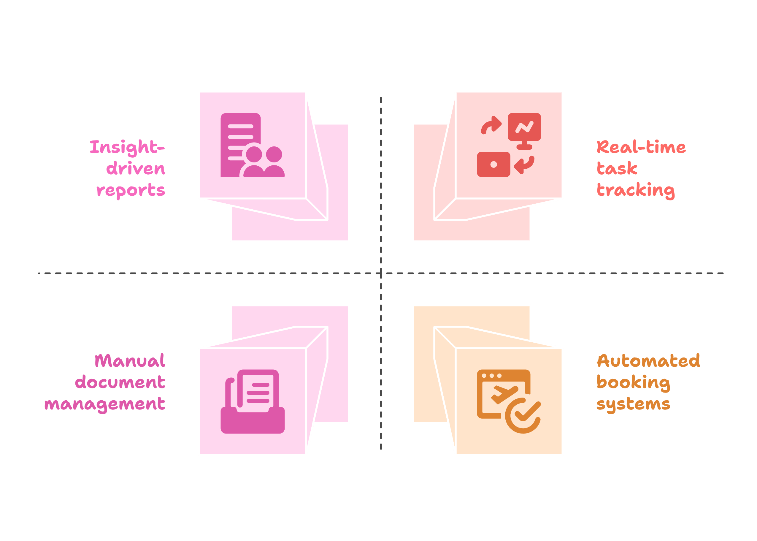 Track tasks, documents, and booking progress in real time. Dashboards and reports keep operations lean, efficient, and insight-driven.